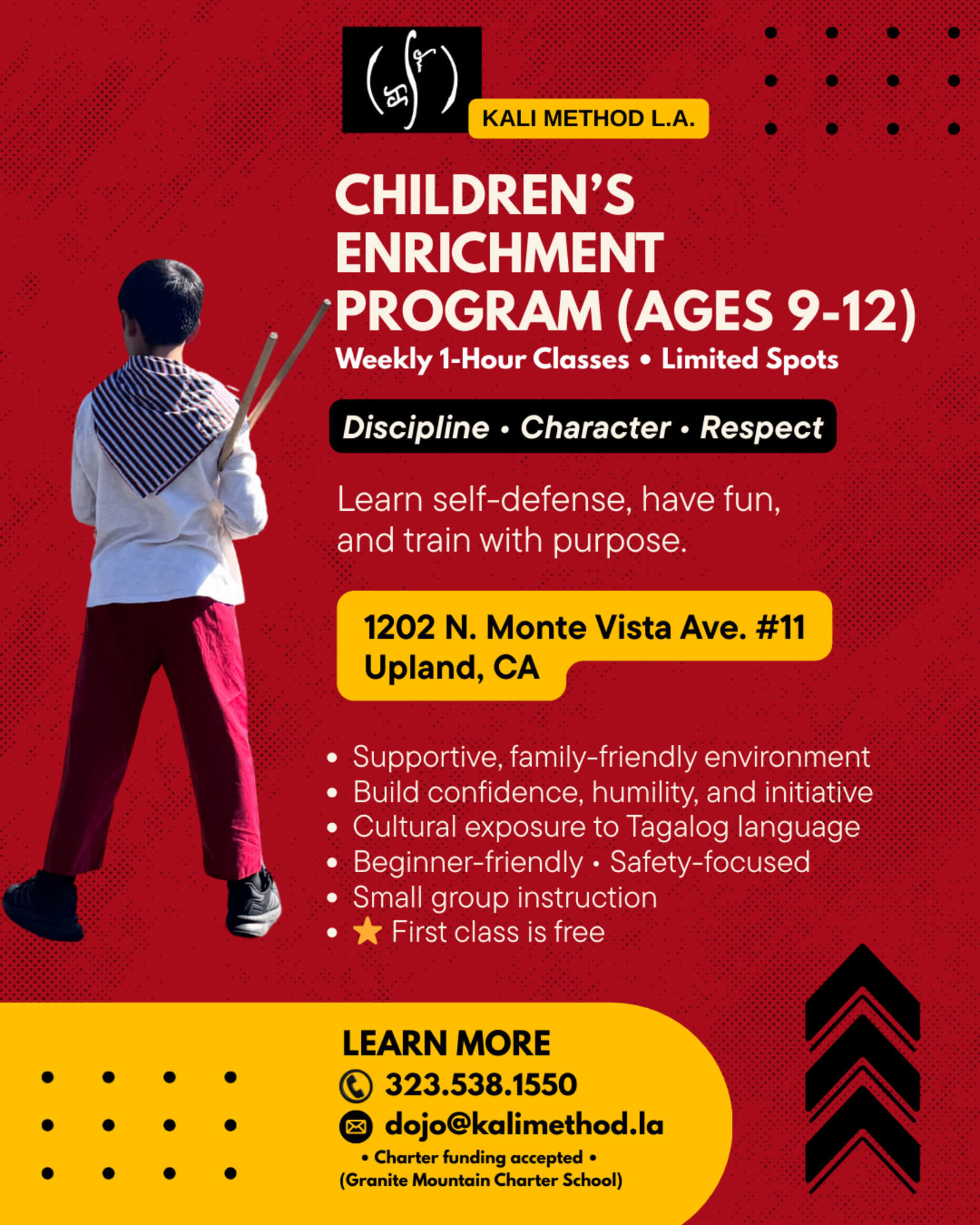 Our Children’s Enrichment Program helps young students build confidence, discipline, focus, and respect through age-appropriate Filipino Martial Arts training.